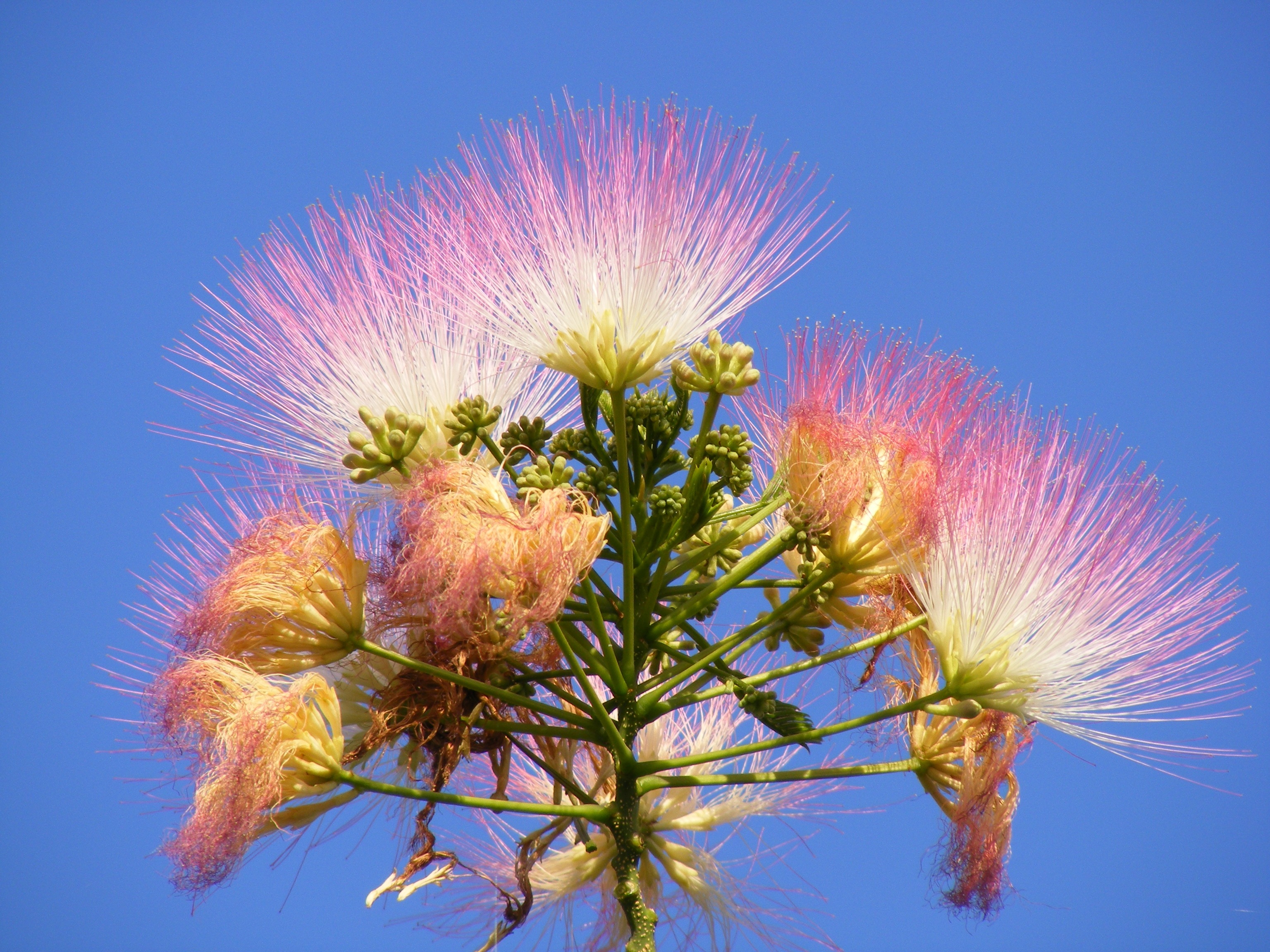The pink powder puffs of mimosa flowers appear in early june throughout the south.